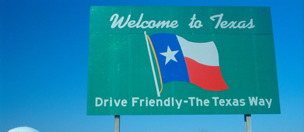 State of Texas sign. DraftKings at the forefront of efforts to legalize sports betting in Texas.